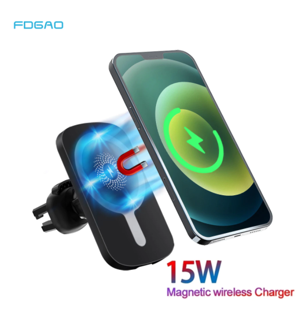 Держатель устанавливается на решетке воздуховода. В его конструкции есть защита от перегрева. Беспроводная зарядка имеет мощность 10 Вт и может заряжать смартфоны в чехле.